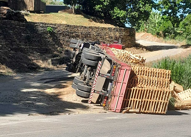 Caminhão carregado com paletes tomba na serra de Soturno