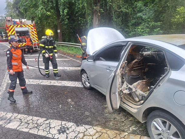 Caminhonete com família de turistas pega fogo e fica completamente destruída na BR-262