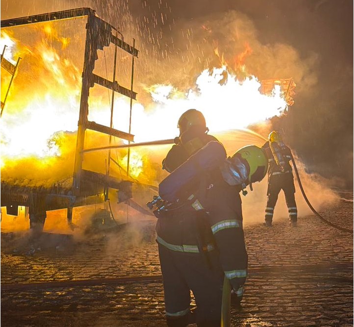 Bombeiros agem rápidos e combatem incêndio em caminhão com produto altamente inflamável na BR-262