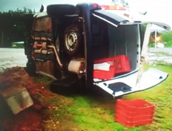 Conforme os bombeiros, o motorista da van perdeu o controle da direção, após se colidir contra uma mureta às margens da pista e tombou.