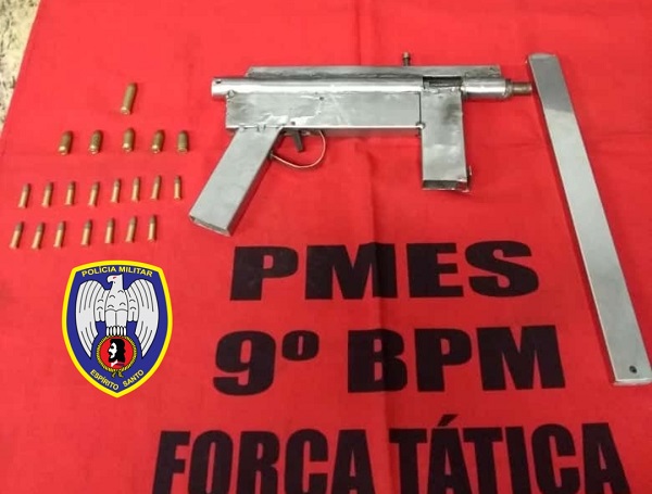Um adolescente de 15 anos foi apreendido com uma submetralhadora no bairro Aeroporto, em Cachoeiro, na noite desta quinta feira (26). A informação foi divulgada pelo 9° Batalhão. Conforme a Polícia Militar, o fato ocorreu às 19h35min na Rua José João Fiori, e a submetralhadora é de fabricação caseira.