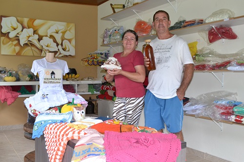 Mas inda não acabou. Faltou dizer que as habilidades da alfredense vão além do artesanato. Dona Margarida ainda encontra tempo para fazer saborosas trufas, licores, mel, fubá e café da roça, também expostos para venda na prateleira da loja.