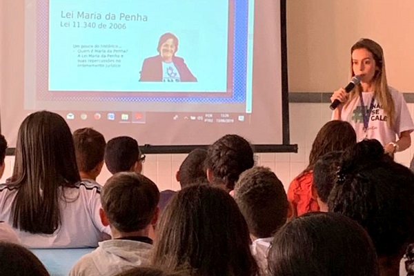 Na última quinta (13) e sexta-feira (14) a Escola Estadual Emílio Oscar Hülle, em Marechal Floriano, recebeu uma ação de conscientização sobre combate à Violência Contra a Mulher, promovida pelo Tribunal de Justiça do Espírito Santo, por meio da Coordenadoria Estadual de Violência Doméstica e Familiar (COMVIDES) e da Central de Apoio Multidisciplinar de Cariacica, que atende aos casos da Comarca.