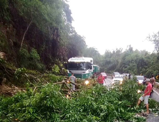 Uma árvore caiu no meio da pista no trecho próximo à entrada de Biriricas, em Domingos Martins na manhã deste domingo (1º). Segundo internauta ao portal NC, o incidente aconteceu durante uma chuva forte que caiu no trecho.