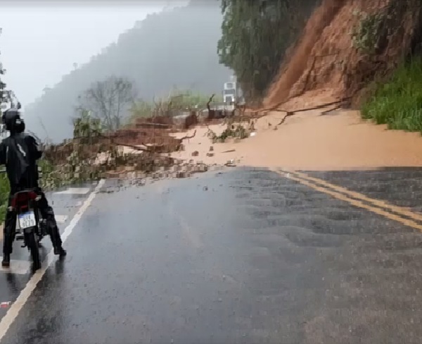 A BR-262, na altura do KM 36, trecho conhecido como “Vista Linda”, em Domingos Martins, completou 15 horas de interdição devido o deslizamento de terra.