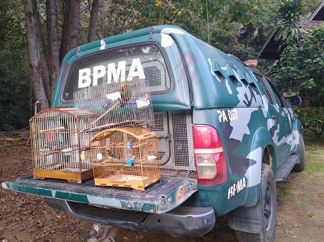 Aves silvestres foram apreendidas pelo 2º Pelotão da 1ª Companhia do Batalhão de Polícia Militar Ambiental (BPMA), na localidade de Soído de Baixo, em Marechal Floriano. Os animais eram mantidos em um cativeiro irregular localizado na casa de um homem, que foi notificado e lavrou o termo circunstanciado.
