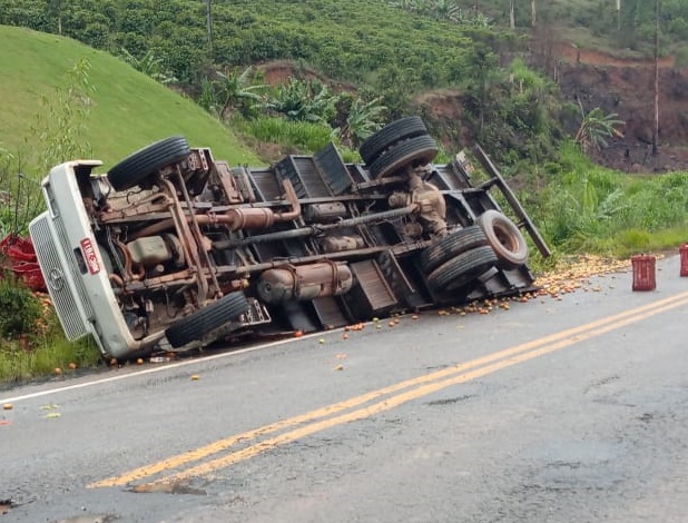Um caminhão carregado com tomates tombou na Rodovia Pedro Cola, que liga Venda Nova do Imigrante a Castelo. O acidente aconteceu por volta das 15horas deste sábado (16), no trecho da localidade de São Roque, em Venda Nova.