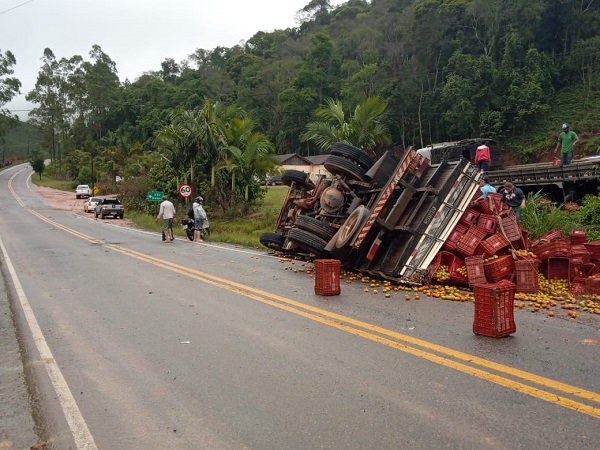 O caminhão tombou às margens da rodovia e pista não precisou ser interditada.