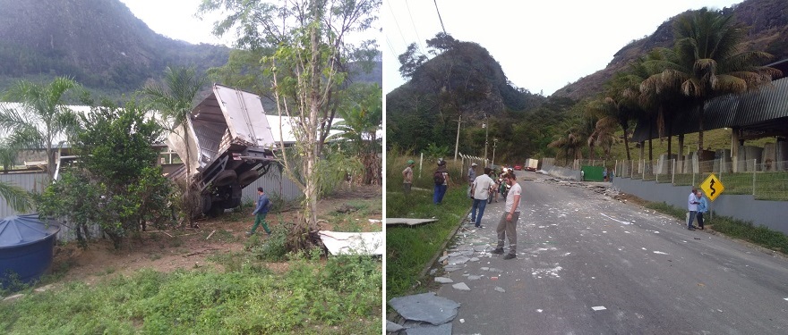 O motorista de uma carreta carregado com chapas de granito perdeu o controle e invadiu uma empresa de mármores e granitos, localizada às margens da Rodovia ES-164, na tarde desta quarta feira (19). O acidente ocorreu na descida da serra de Soturno, próximo à famosa “Curva da Morte”, trecho que liga Cachoeiro à Vargem Alta.