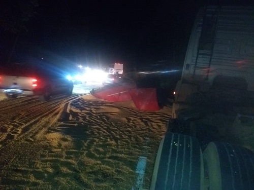 Motoristas que trafegaram pela BR-262, altura do município de Marechal Floriano, na região serrana do Estado, no início da noite deste domingo (21), precisaram redobrar a atenção. Uma carreta carregada de milho tombou no km 75, próximo à localidade de Victor Hugo, na divisa entre os municípios de Marechal Floriano e Domingos Martins.