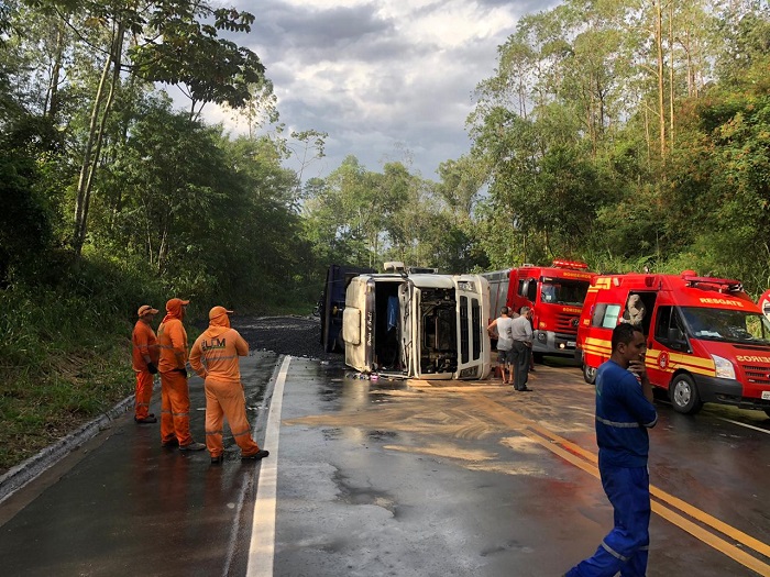 Às 15h35, conforme informação da PRF, o trecho foi parcialmente liberado com trânsito fluindo em Pare/siga. A carreta carregada com carvão tombou no sentido Viana – Venda Nova do Imigrante. O Condutor da carreta, 38 anos, foi socorrido com ferimentos leves para o hospital da região.