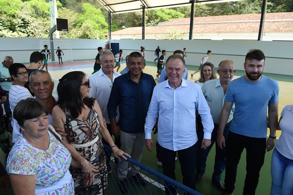 O governador do Estado, Renato Casagrande, e a vice-governadora Jaqueline Moraes estiveram em Alfredo Chaves, na manhã desta quinta-feira (3), para a inauguração da quadra poliesportiva da Escola Municipal de Ensino Fundamental (EMEF) Ana Araújo e da entrega de veículos e equipamentos para a implantação da “mini Ceasa” no município. Também foi anunciado um convênio para construção de uma escola no distrito de Ibitiruí.