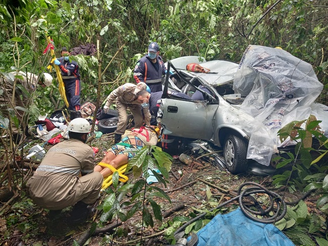 Segundo o relato dos bombeiros, um veículo modelo Corsa, com placas de Minas Gerais, vinha de Vitória quando perdeu o controle da direção em uma curva, devido à pista molhada, e capotou caindo da ponte. Os militares, junto com socorristas do Samu, desceram por um barranco até o automóvel. As vítimas encontravam-se desacordadas, porém, responderam a estímulo verbal. Os adultos foram retirados das ferragens e estabilizados. Já a criança foi retirada do veículo por populares e recebeu atendimento por uma equipe do SAMU Avançada.