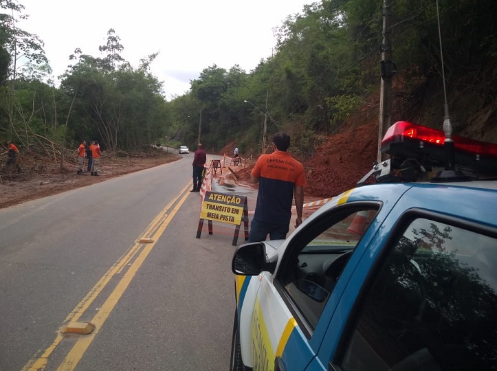 Atenção, motoristas; Deslizamento de terra deixa trânsito parcialmente interditado na avenida Newton Braga, em Cachoeiro