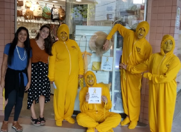 O comerciante Glaubo Martins também enfeitou a vitrine de balões e acredita que ações assim também são positivas para o comércio. “A intenção é chamar a atenção dos pedestres com as lojas todas amarelas e alertar sobre os acidentes de trânsito”, disse.