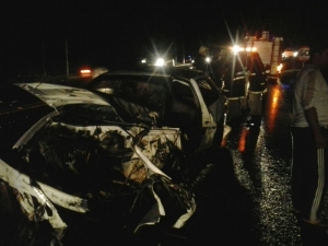 Ainda no inicio da noite, segundo testemunhas, o motorista de um veículo modelo Gol Bola perdeu o controle em uma curva, próximo ao trevo de Domingo Martins, invadiu a contra mão e bateu no lado esquerdo do caminhão, que seguia no sentido contrário.