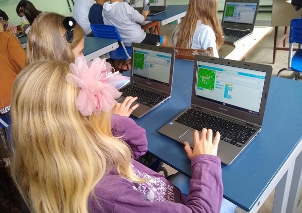 Outra frente adotada pelo professor foi a utilização do ‘Google Sala de Aula’, por meio dos Chromebooks. Com o equipamento, os estudantes trabalharam com o site code.org e puderam desenvolver conhecimento sobre programação de computadores.