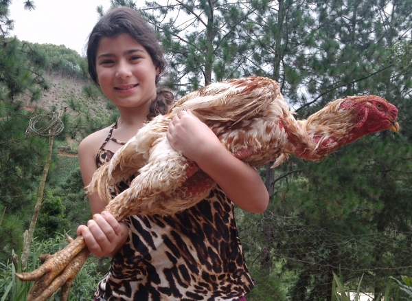 Léo conta que a exemplo da criação de galinhas caipiras, o manejo de criação do galo gigante não é difícil. “Os cuidados são tradicionais, como alojamento adequado, sombreamento, ração balanceada, áreas cercadas com pastagens de boa qualidade e vacinações”, explica. A produção é familiar e até as crianças da casa ajudam no manejo das aves.