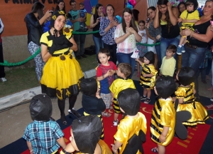 Alguns alunos desfilaram na passarela montada na rua, em frente à creche. Com roupas floridas e coloridas, deixaram os pais encantados. Foram dezenas de cliques para fotografar os pequenos.Uma turma dançou e cantou a música “Pop pop”. Outras crianças se vestiram de abelhas e zangões e fizeram uma verdadeira festa com as professoras e os pais, ao som de uma bela canção.