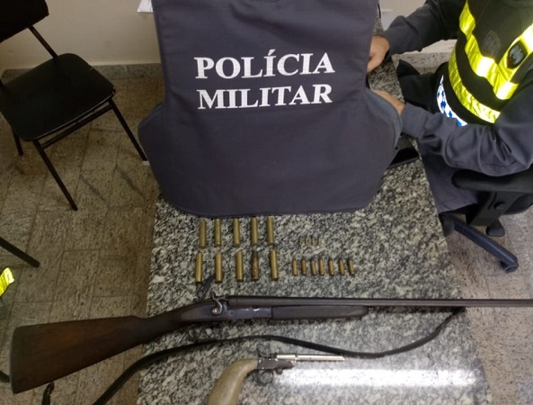 No interior da residência, foi possível visualizar e apreender duas armas de fogo, sendo uma espingarda de calibre 36 e uma garrucha calibre 22, 10 cartuchos de calibre 32, sete munições de calibre 38 e quatro munições de calibre 22. O senhor de 47 anos, que assumiu a propriedade dos materiais, foi conduzido à Delegacia de Castelo junto material apreendido.