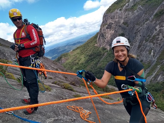 “A descida começou bem. O equipamento ajudou na segurança do rapel. Uma chuva intensa nos surpreendeu e tivemos algumas dificuldades. Foi um momento de superação e de extrema confiança. Foi maravilhoso. Nunca vou me esquecer. Me apaixonei novamente pela Pedra Azul, agora, em um nível mais elevado”, contou a gestora que também é bióloga.