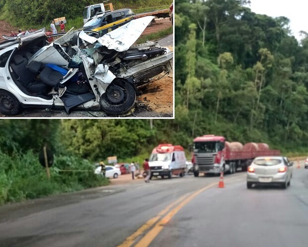Segundo informação de testemunhas das cinco pessoas que estavam no veículo de passeio, duas mulheres ficaram gravemente feridas e presas às ferragens.