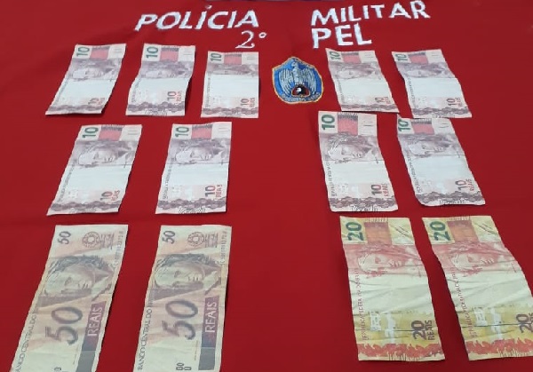 Durante a revista, policiais encontraram com o acusado C.C, de 40 anos, 13 cédulas falsas, totalizando R$ 213 em notas falsas.