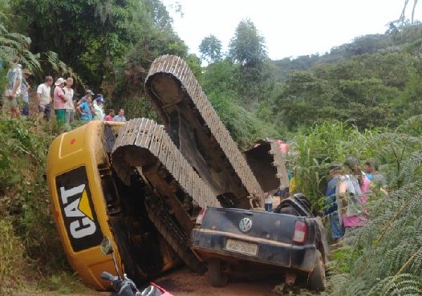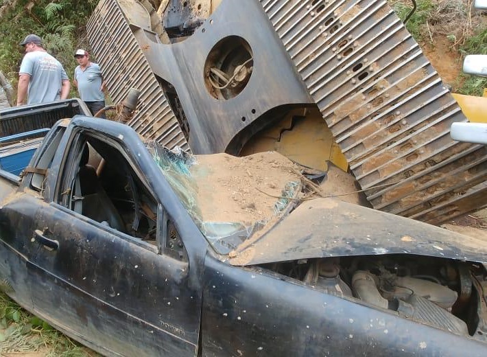 Um homem morreu e outro ficou ferido nessa terça-feira (5), após perder o controle da escavadeira hidráulica que conduzia e cair em um barranco e atingir um veículo, na localidade de Alto Pena, zona rural de Domingos Martins, na região de montanhas do Estado.