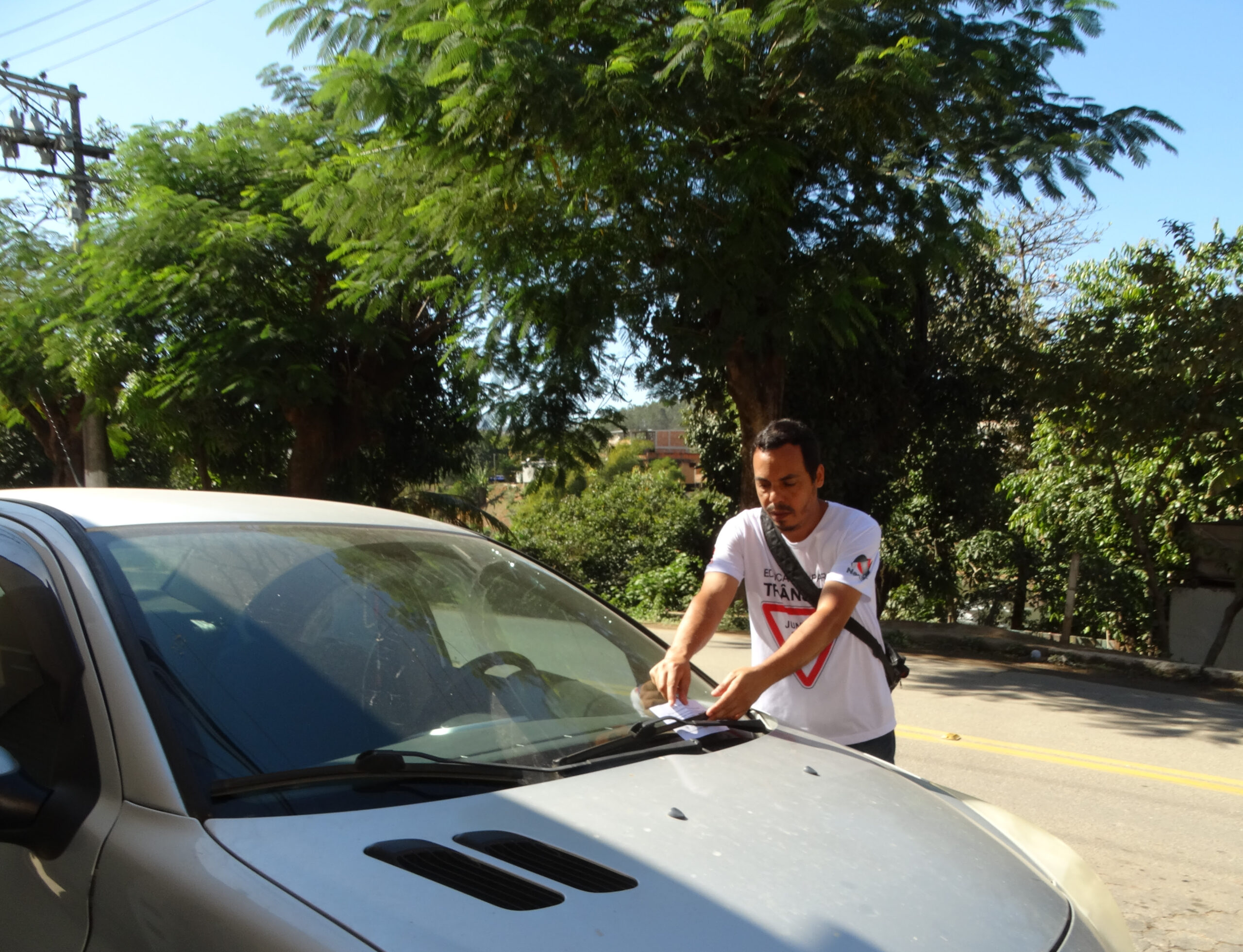 Nos veículos estacionados irregularmente ao longo dessas vias, o Departamento de Educação de Trânsito deixou panfletos com orientações.