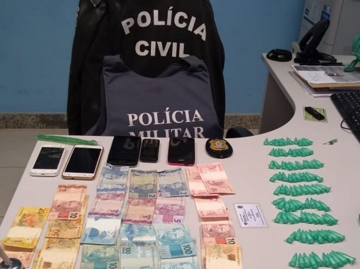 Com os acusados, os policiais encontraram 106 pinos de cocaína, além de R$ 1.006,00, quantia adquirida no tráfico de drogas.