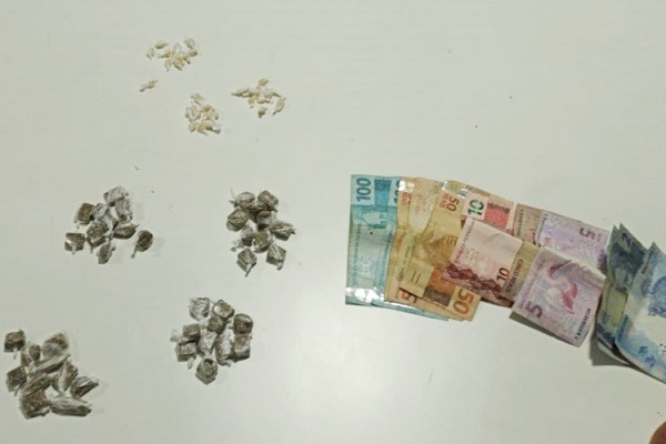 Rapidamente, as guarnições montaram um cerco no morro, e conseguiram abordar um dos indivíduos e apreender com ele 31 pedras de crack, 40 buchas de maconha, além de R$ 382,00.