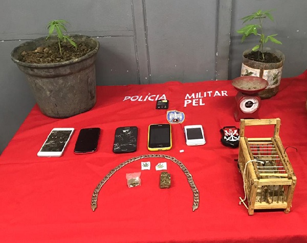 Ainda segundo o comando, durante abordagem próximo de um terreno onde o grupo estava foi possível observar pelos militares que na área de serviço da casa havia dois pés de maconha plantados em vasos.