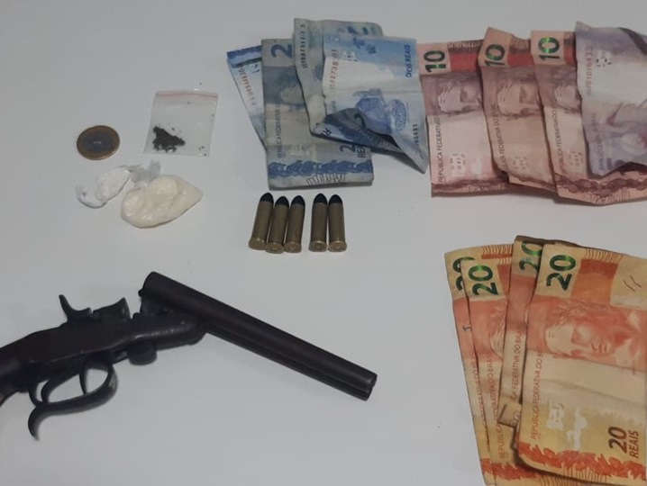 Em um bolsa que o suspeito carregava, os policiais apreenderem mas duas munições, uma quantidade de dinheiro e certa quantidade de drogas. O homem foi então detido e conduzido ao DPJ de plantão em Venda Nova do Imigrante, onde foi apresentado ao delegado de plantão, junto com o material apreendido.