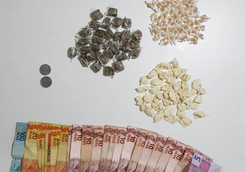 Já na tarde de ontem (14), durante patrulhamento no morro Bela Vista, no bairro São Vicente, em Afonso Cláudio, uma guarnição deteve três suspeitos, após serem flagrados comercializando entorpecente. No local, os policiais encontraram uma sacola contendo 31 buchas de maconha, 49 papelotes de cocaína, 84 pedras de crack e R$ 366,00 em espécie.