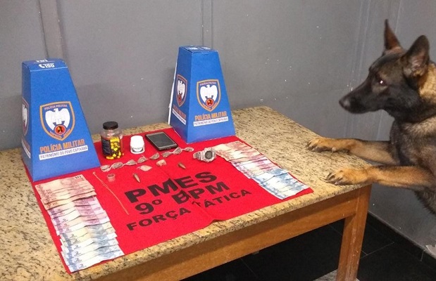 Nesta terça-feira (26), policiais militares do 9º Batalhão da Polícia Militar do Estado do Espírito Santo prenderam um indivíduo suspeito de traficar drogas no bairro Costa e Silva, em Cachoeiro de Itapemirim. A ação contou com a ajuda do cão farejador Messi para encontrar os entorpecentes escondidos.