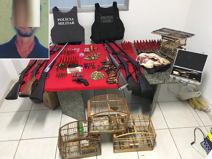 De acordo com a polícia, o acusado W. J. T., 66 anos, não reagiu à prisão, e com ele foi apreendidos 6 espingardas, 208 munições de calibre 22, intactas, 56 munições de calibre 38, 12 cartuchos de metal, cal. 32, intactos, 40 cartuchos de plástico, cal. 32, intactos, 13 cartuchos de plásticos, cal. 36, intactos, 5 cartuchos de metal, cal. 36, Intactos, 4 Cartuchos de plásticos, cal. 12, intactos, além de muitas munições de vários calibres deflagradas e armadilhas para captura de animais silvestres e alguns pássaros sem a devida documentação.