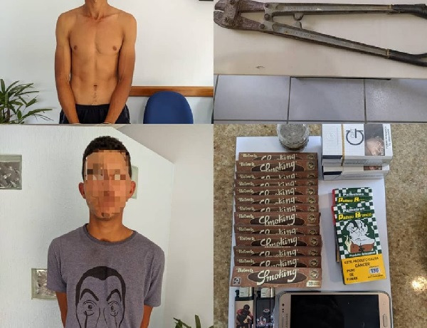 Dois foram presos, acusados de arrombamento em um bar no Centro de Marechal Floriano na tarde desta terça feira (15). A ação realizada pela Polícia Militar (PM), e resultou na apreensão de pacotes de maços de cigarros, um celular do proprietário do bar, além de outros produtos furtados.