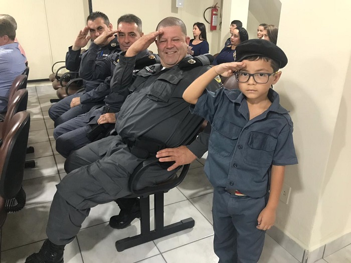| Lucas Kiefer, de 5 anos, participou da homenagem e disse que o sonho dele é ser policial. |