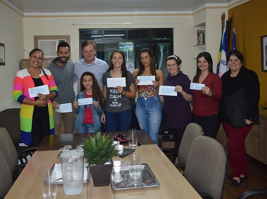 O prefeito de Marechal Floriano, João Carlos Lorenzoni recebeu em seu gabinete na tarde desta terça-feira (09), os ganhadores da primeira edição do Show de Talentos, que aconteceu no XIX Festival Ítalo-Germânico.