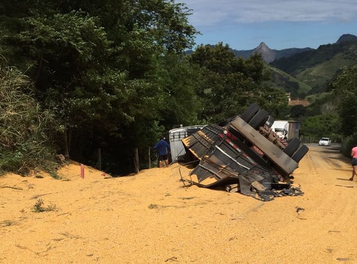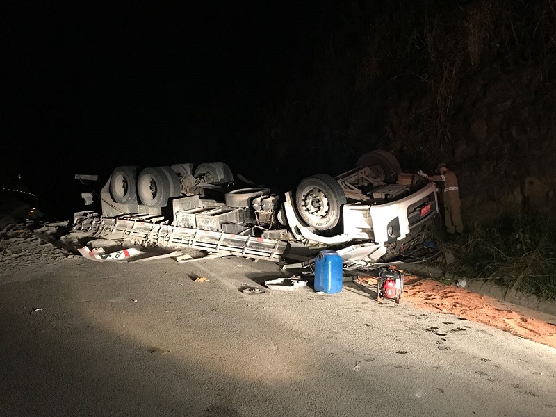 Motorista fica ferido após tombar carreta na Rodovia Pedro Cola