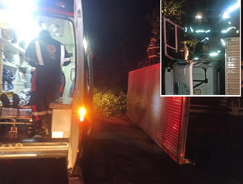 Caminhonete capota e motorista fica ferido em estrada vicinal no interior de Domingos Martins