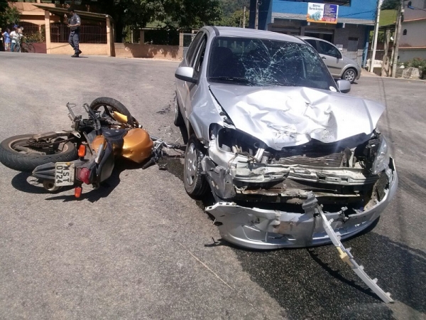 Acidente entre e carro e moto deixa mulher ferida na Rod. ES-164, em Sorturno