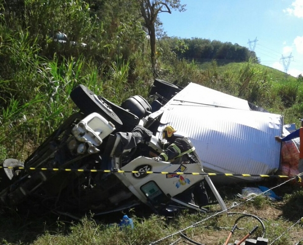 Caminhoneiro morre preso às ferragens em acidente na Rodovia ES-487, em Rio Novo do Sul