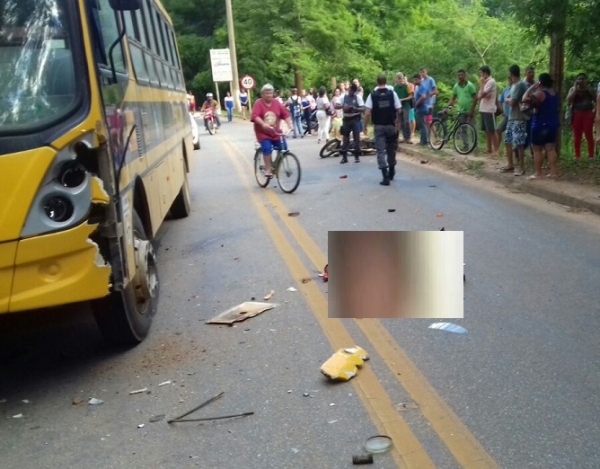 Colisão entre ônibus escolar e moto deixa um morto na Região Serrana