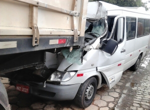 Van com quinze pessoas bate em caminhão e deixa uma pessoa ferida em Venda Nova