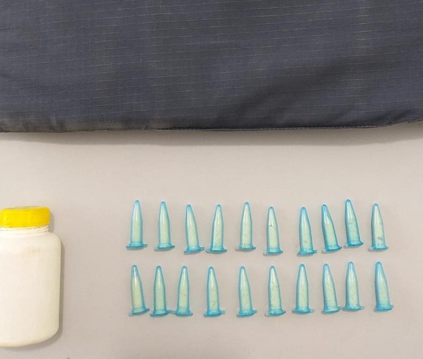 No local os militares avistaram o marido evadindo-se para um cafezal, e na residência deles foram encontrado 20 pinos de cocaína.